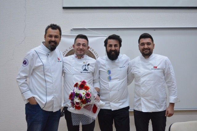Aşçılığın Dünü, Bugünü ve Gelecekteki Önemi Söyleşisi09 Nisan 2019 tarihinde Üniversitemiz Turizm Fakültesi konferans salonunda Pınarhisar Meslek Yüksekokulu Aşçılık Programı Öğretim Görevlileri Mehmet Selman BAYINDIR ve Aykut AYBAŞ tarafından saat: 13:00-15:00 aralığında düzenlenen “Aşçılığın Dünü, Bugünü ve Gelecekteki Önemi” konulu söyleşi düzenlenmiştir. Söyleşi Televizyon Programcısı Ünlü Şef Rüzgar SÜNBÜL ve Trakya Profesyonel Gastronomi Derneği Başkanı Şef Rafi ERDOĞAN katılımlarıyla gerçekleştirilmiştir. Söyleşi Pınarhisar Meslek Yüksekokulu Müdürü Doç. Dr. Sezai ÖZTAŞ’ın Şef Rüzgar SÜNBÜL ve Şef Rafi ERDOĞAN’a plaket sunumuyla sonlanmıştır.http://pmyo.klu.edu.tr/Sayfalar/13497-asciligin-dunu-bugunu-ve-gelecekteki-onemi-soylesisi.klu |
